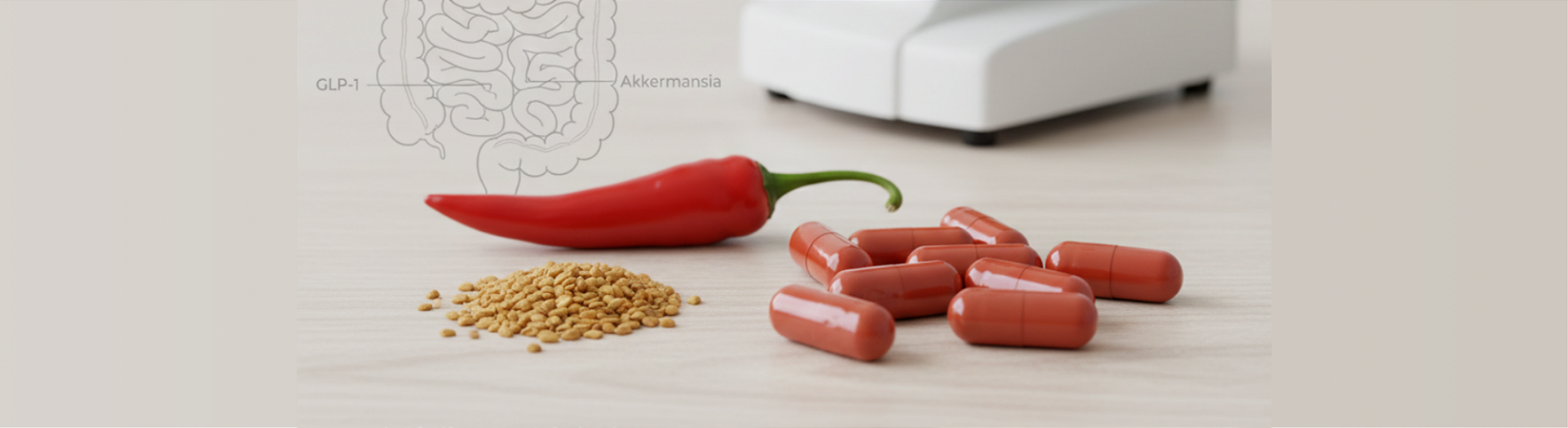 O Akkermat é um complexo fitoativo obtido dos frutos da Capsicum frutescens (a pimenta vermelha), padronizado em capsaicinoides (como a capsaicina). Mas não é apenas "pimenta em cápsula": o grande segredo está em sua tecnologia patenteada chamada Fenumat™.